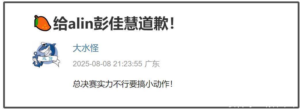 而等A-lin第一轮挂车尾排名第七时棒棒策略,彭佳慧更是抱着A-lin自责落泪,网友纷纷为两人鸣不平,直呼两人被做局了,还有不少网友刷屏要求芒果台道歉。