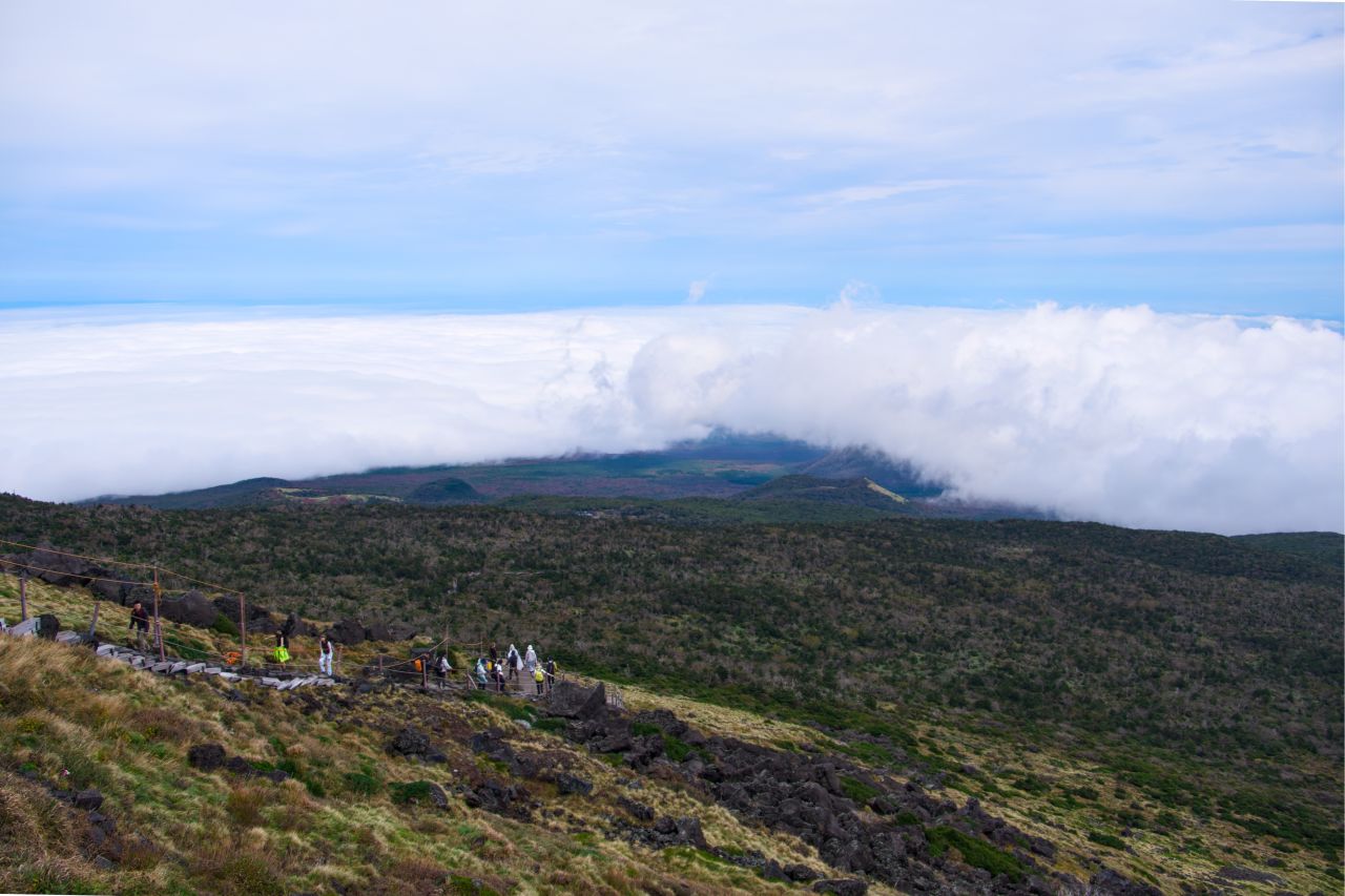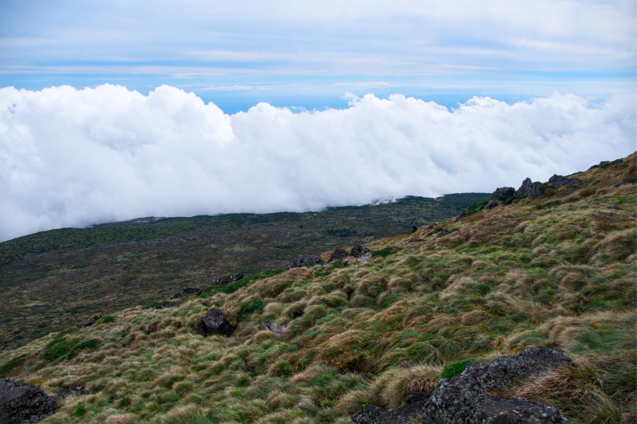 最后一天就堪称最重要的一天了,因为这天我要爬汉拿山了,韩国最高峰,海拔将近2000米,果然十分有难度,单程9.6公里,全程将近20公里,花了十一个小时完成往返。好在老天开眼,山顶是晴天,风景十分壮观,像宫崎骏动画电影《起风了》中的场景。也如愿拿到了登顶的证书,其中的注意事项和预约流程较为复杂,如果很多同学都感兴趣,我会单独做一期内容来讲汉拿山。