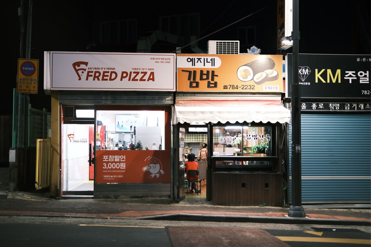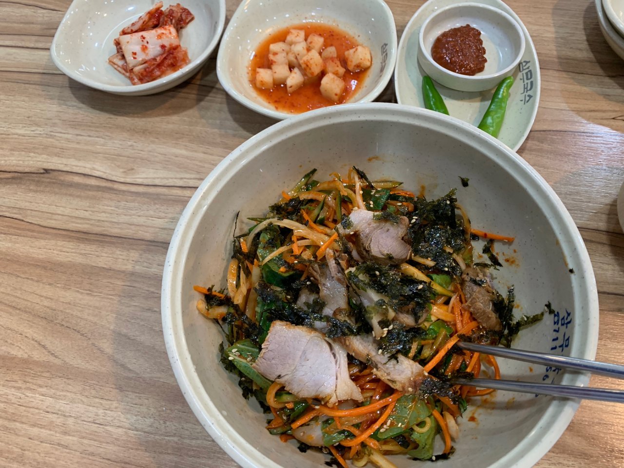 第一天落地济州岛,出了机场也才七点多,这个时候我已经开始感觉不对劲了,已经将近24小时都没睡过(没错我前一天也完全没补觉),然后赶到酒店,把箱子存在酒店决定周围先逛逛。先是吃了到韩国的第一餐,没想到韩国除了有冷面还有豆浆面,就是一碗冰豆浆下面条,不甜也不咸,啥味没有属于是。出来以后在周围的市场逛了一逛,结果没逛一会就困的不行了,只能钻进麦当劳睡了很久,15块钱的汉堡就是我妈吃的。这一天算是没干啥。