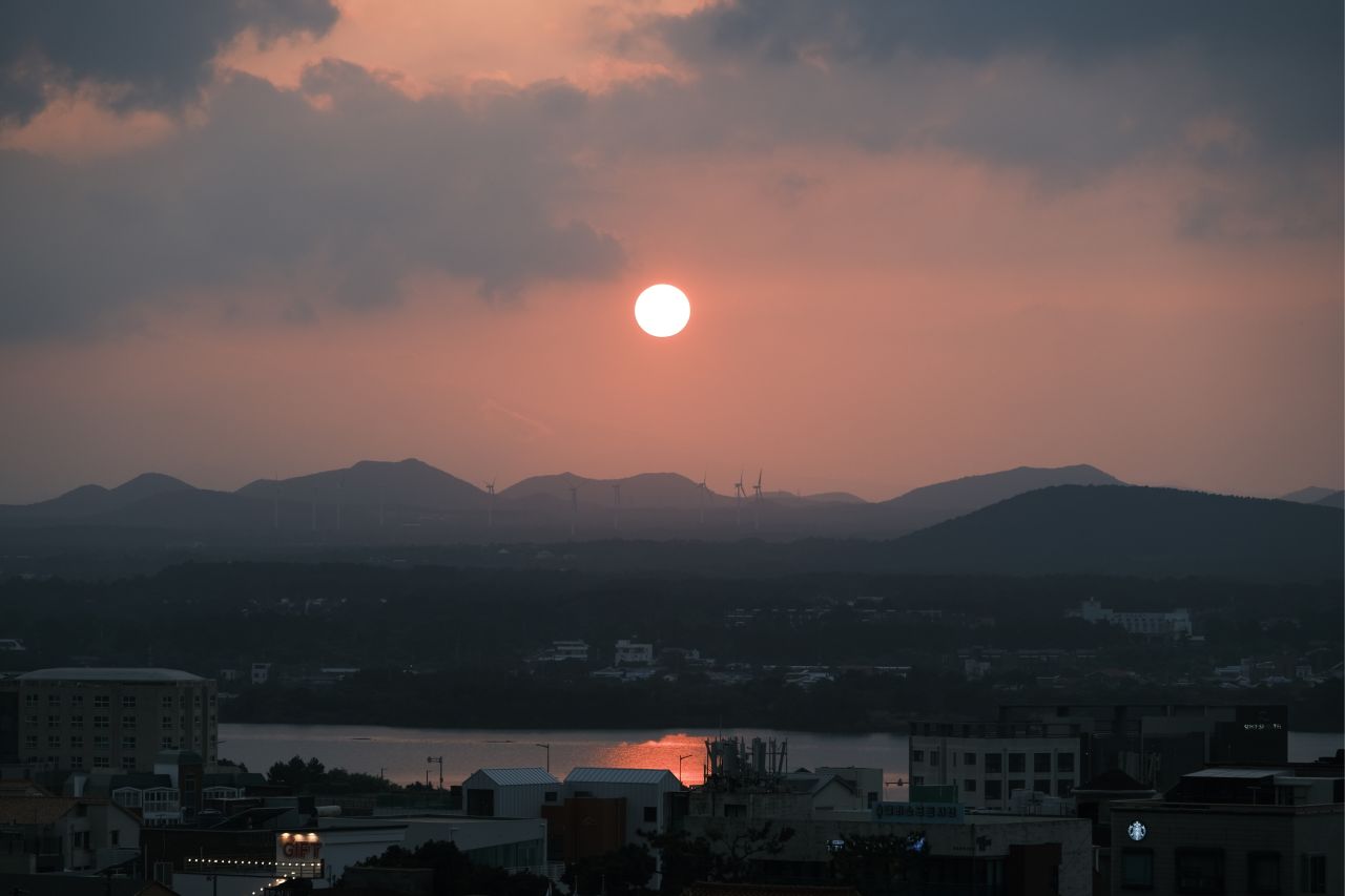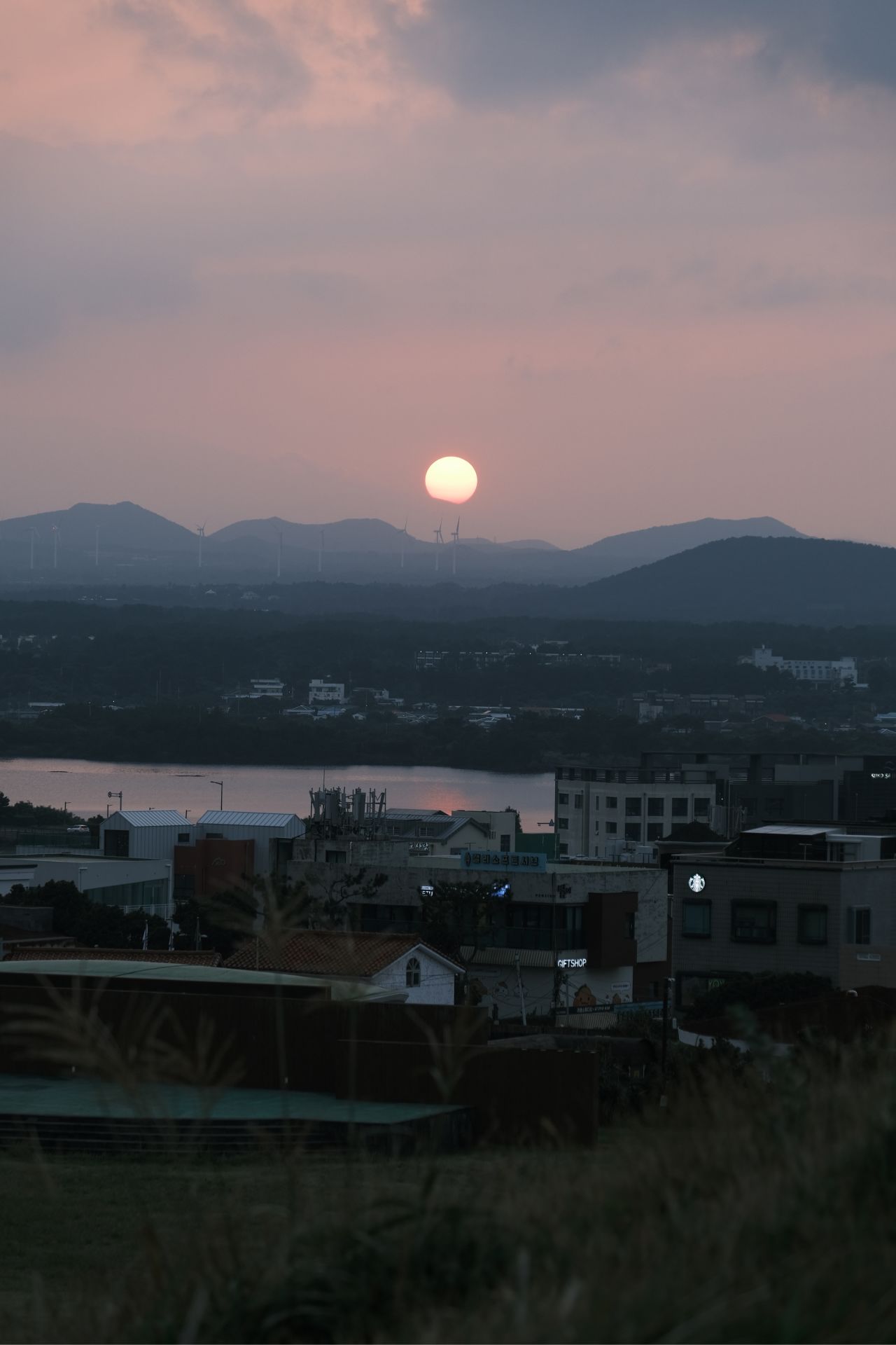看完日出回酒店睡了一下午,晚上趁着天气凉爽,又回到日出峰,准备看一看日落,虽说不如在济州岛西岸壮观,但也足矣。